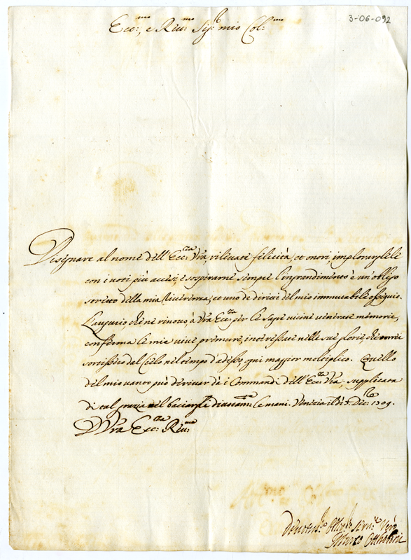 Lettera di Marco Ottoboni ad Annibale Albani (1709 dicembre 7)