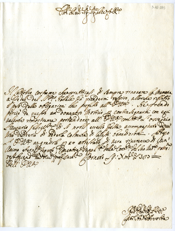 Lettera di Carl'Antonio Rivolta al cardinale Annibale Albani (1727 dicembre 19)