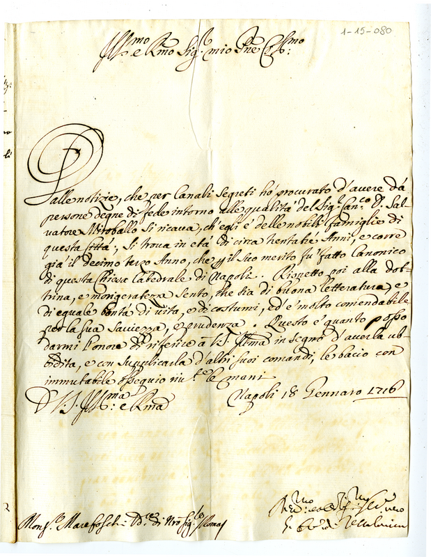 Lettera di raccomandazione a favore del canonico Salvatore Miroballo