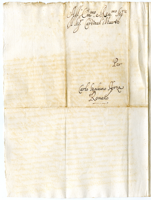 Lettera di Carlo Stefano Sforza al cardinale vicario (1700-1721)