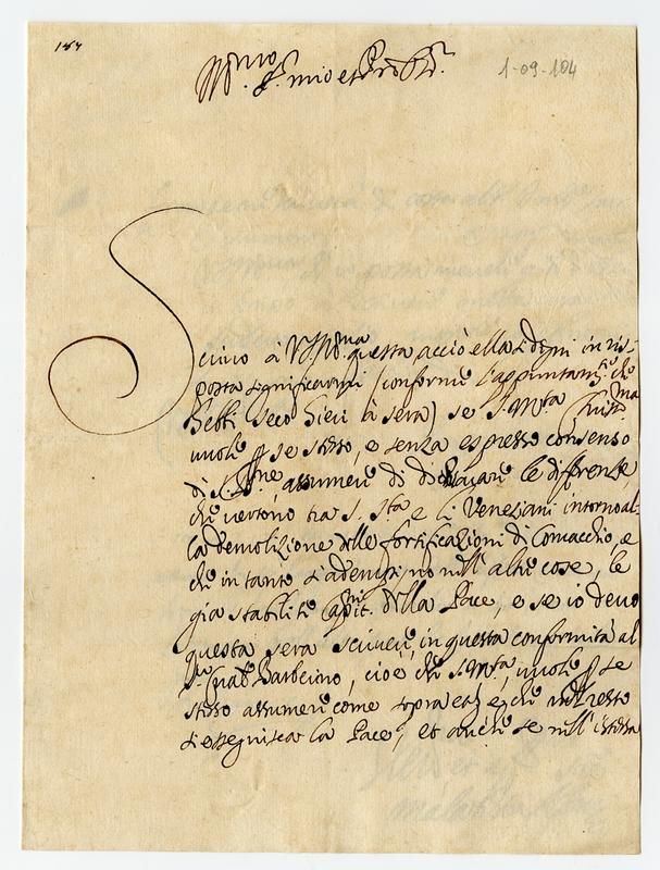 3. Lettere, e scritture, dalle quali appariscono Li Servigij fedelmente resi alla Sede Apostolica da Malatesta Albani sotto il Pontificato d'Urbano Ottavo, tanto in tempo di Guerra, quanto in tempo di pace alla Sua morte seguita in Francia Li 7 Ottobre 1645. Distintamente indicate ne seguenti fogli