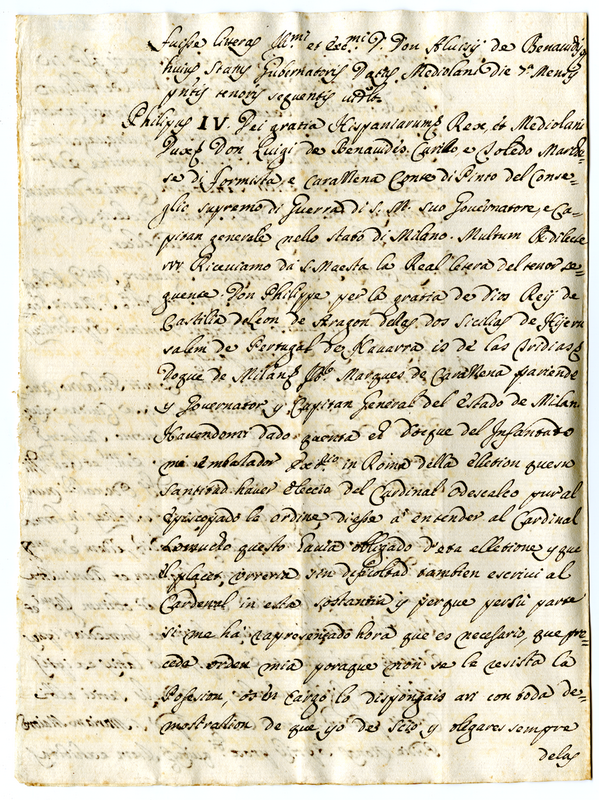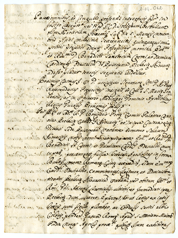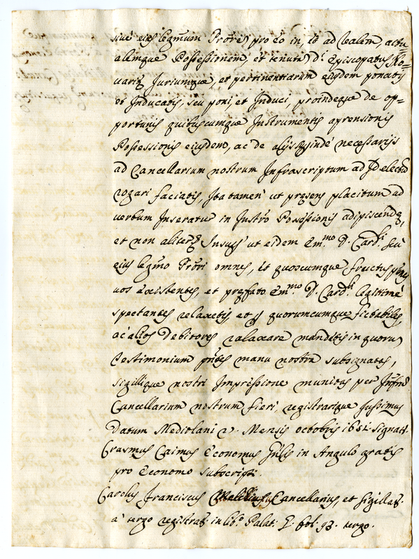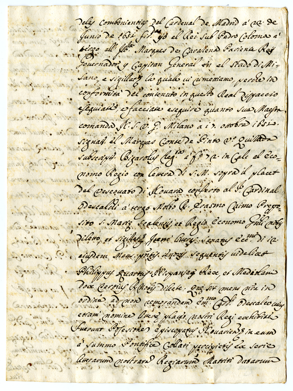 Attestato di riconoscimento del diritto del cardinale Odescalchi sulla chiesa di Novara