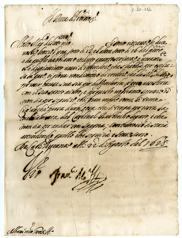 Lettera di Francesco Maria duca di Urbino ad Orazio Albani (1625 agosto 22)