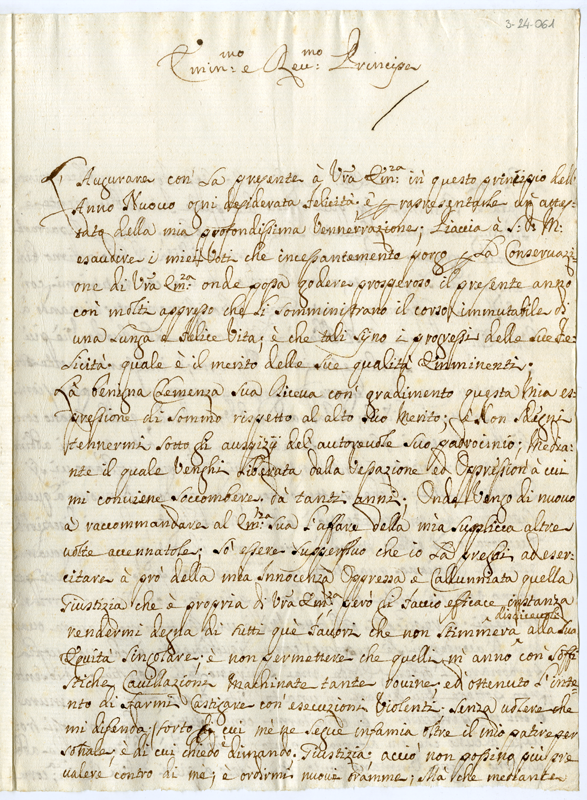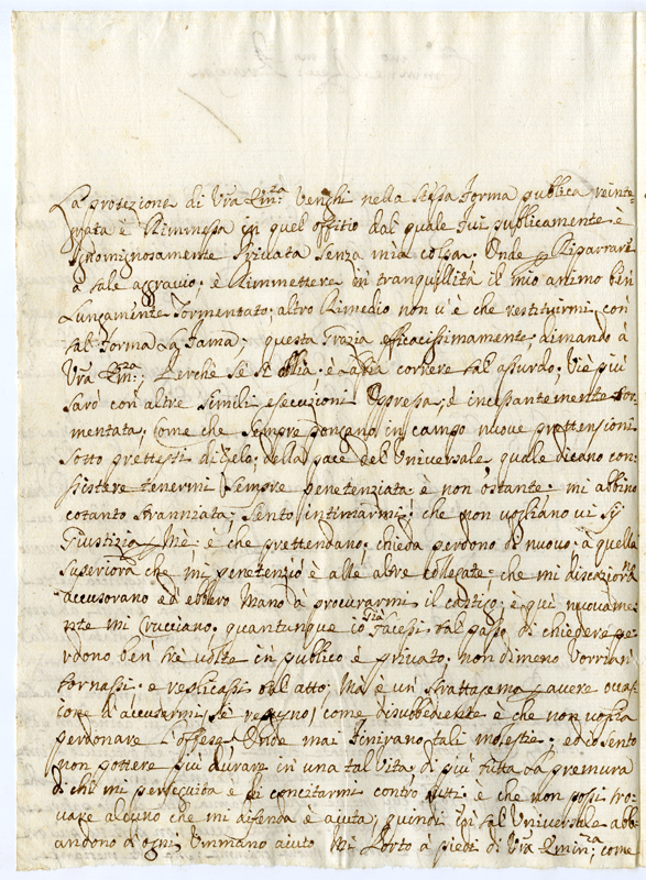 Augura buone festività e supplica di intervenire a vantaggio della sua innocenza oppressa e calunniata dalla sua superiora.