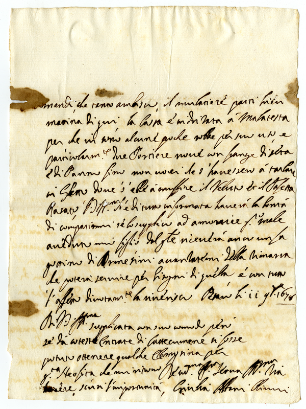 Lettera di Giulia Albani Olivieri degli Abbati a Giovanni Francesco Albani (1678 novembre 11)