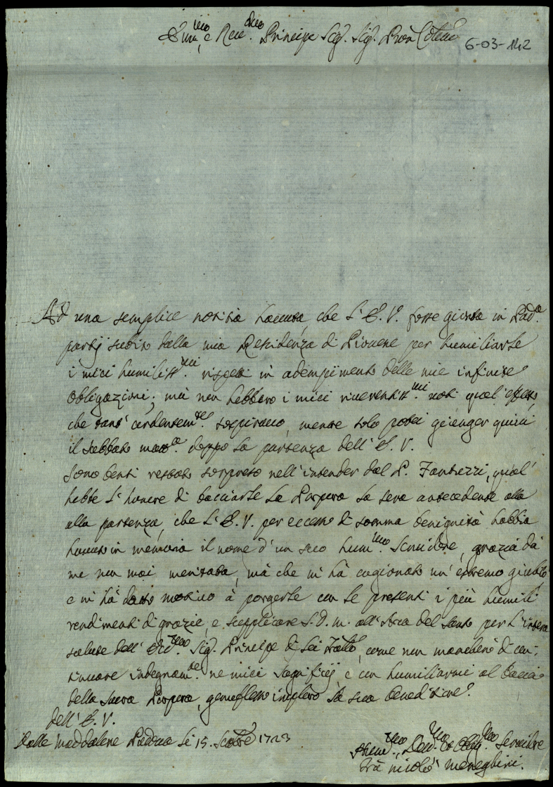 Lettere di complimento e di negozio. 1723. Semestre secondo
