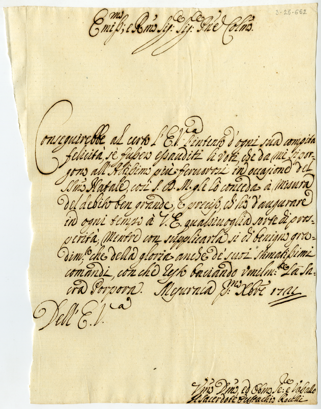 Lettera di Eustachio Rocchi al cardinale Annibale Albani (1721 dicembre 1)