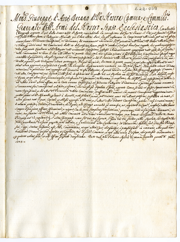 Monsignor Giuseppe d'Aste Decano della Nostra Camera, e Commissario Generale dell'Armi del Nostro Stato Ecclesiastico (1702 settembre)