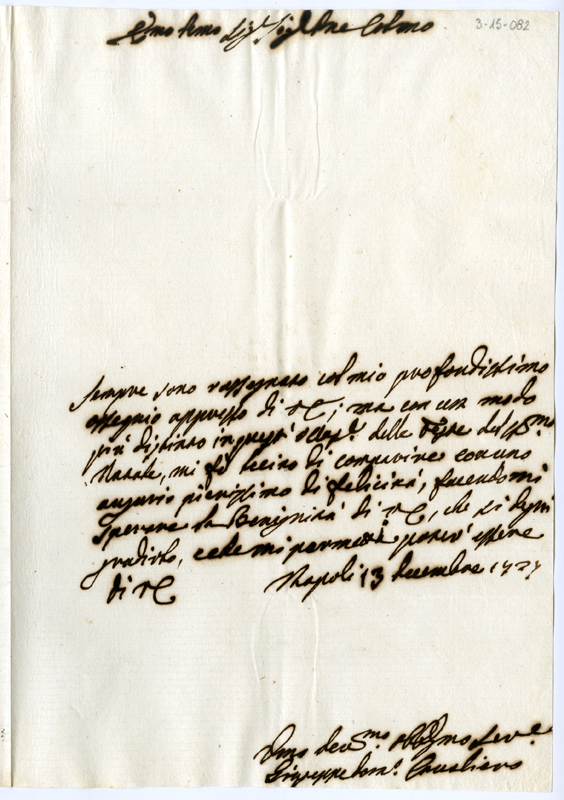 Lettera di Giuseppe Domenico Cavaliero al cardinale Annibale Albani (1727 dicembre 13)