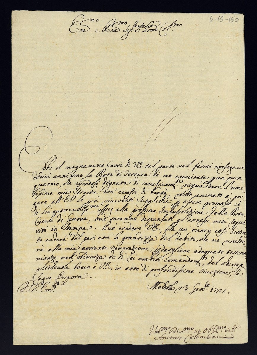 Lettere di complimento e di negozio. Semestre primo. Gennaio