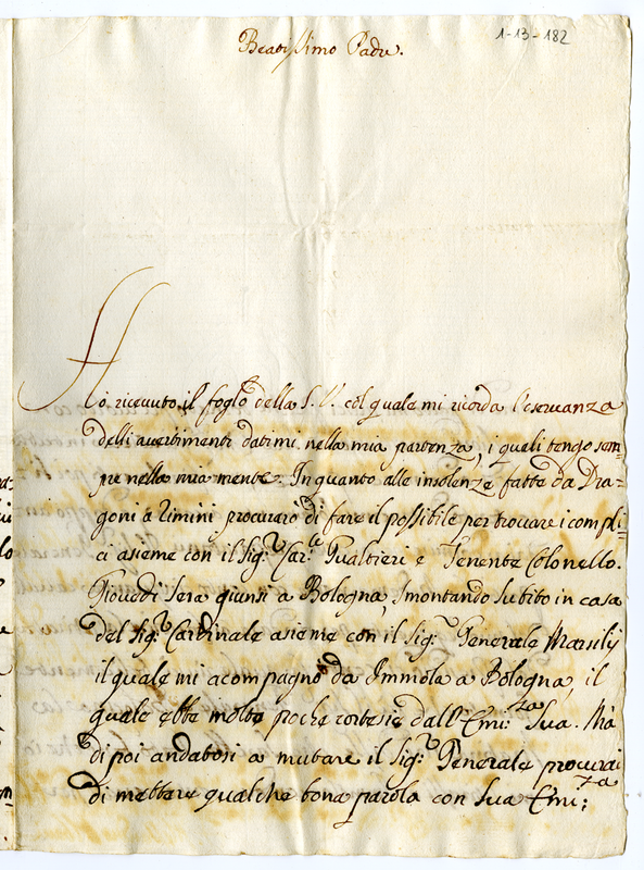Lettera di Alessandro Albani a papa Clemente XI (1708 novembre 4)
