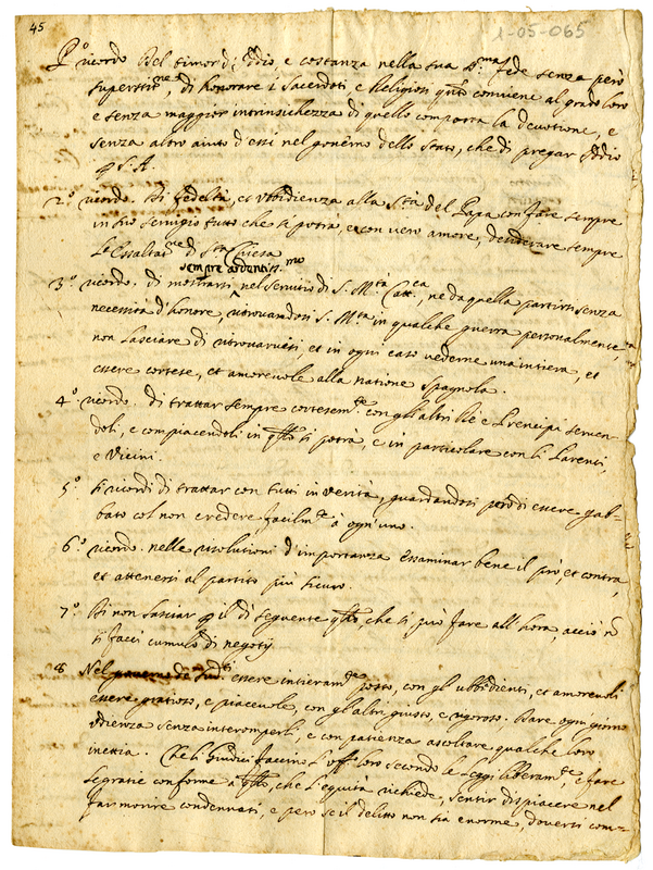 Copia dei ricordi lasciati dal duca d'Urbino a Guidubaldo II suo figlio e successione del ducato