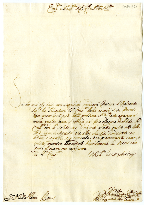 Lettera di Giovanni Giorgio Pallavicino al cardinale Annibale Albani (1719 dicembre 20)