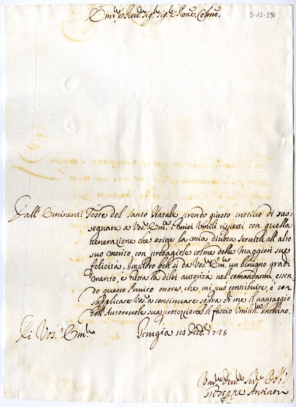 Lettera di Giuseppe Antinori al cardinale Annibale Albani (1725 dicembre 18)