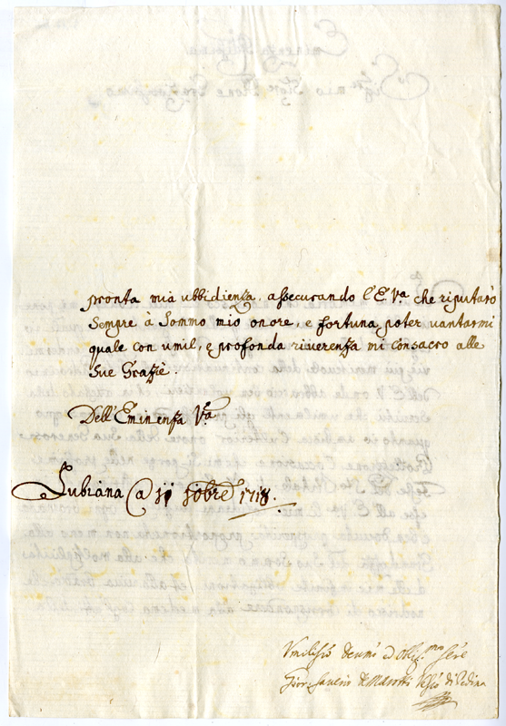 Lettera di Giorgio Saverio de Marotti vescovo di Pedena al cardinale Annibale Albani (1718 dicembre 11)