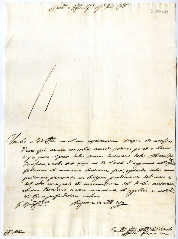 Lettera di Egidio Giannini al cardinale Annibale Albani (1713 dicembre 13)