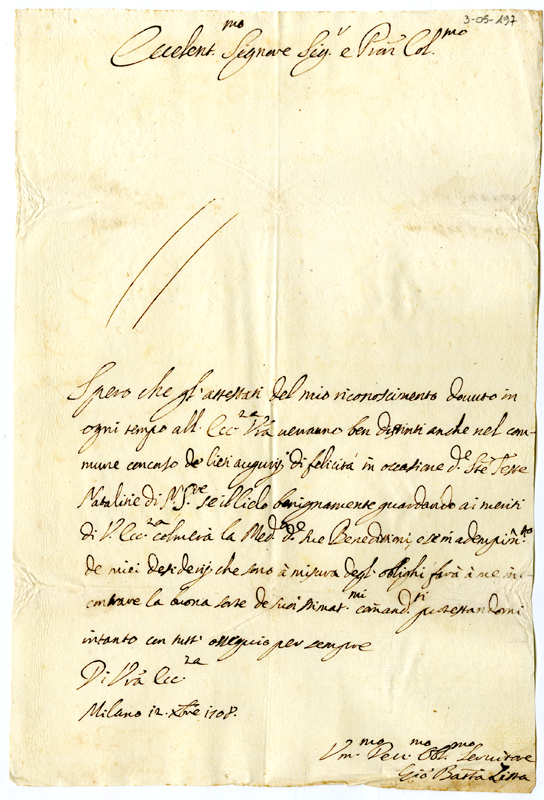 Lettera di Giovanni Battista Litta ad Annibale Albani (1708 dicembre 12)