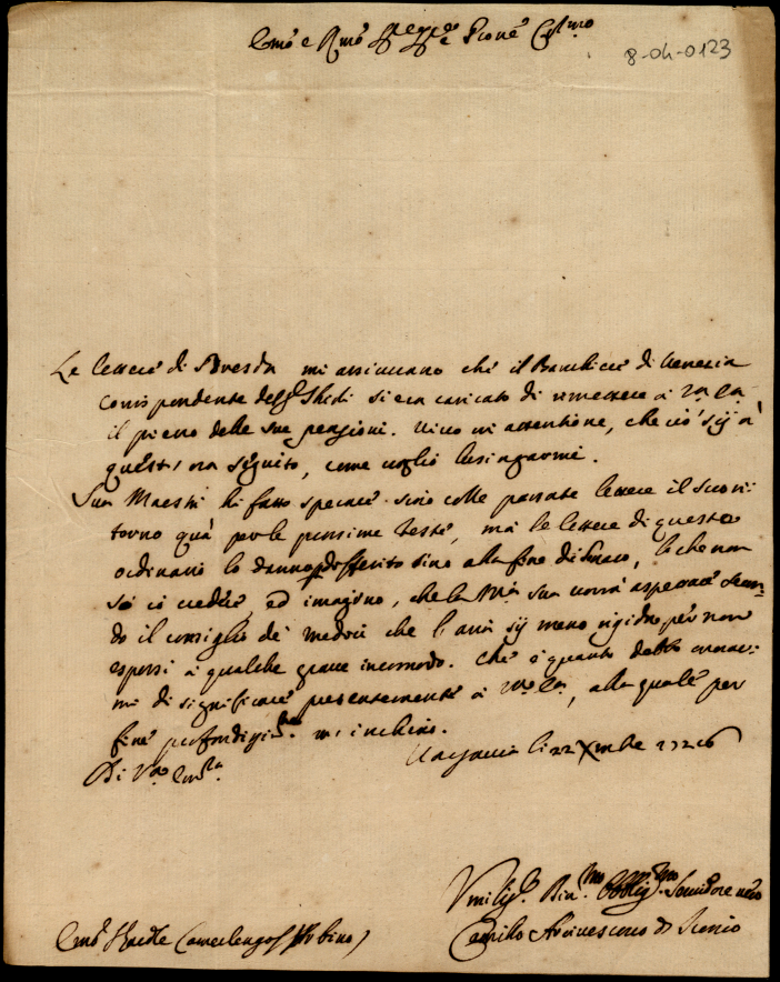 3. Lettere di diversi all'eccellentissimo signor cardinale S. Clemente dell'anno 1723, 1727 e 1728