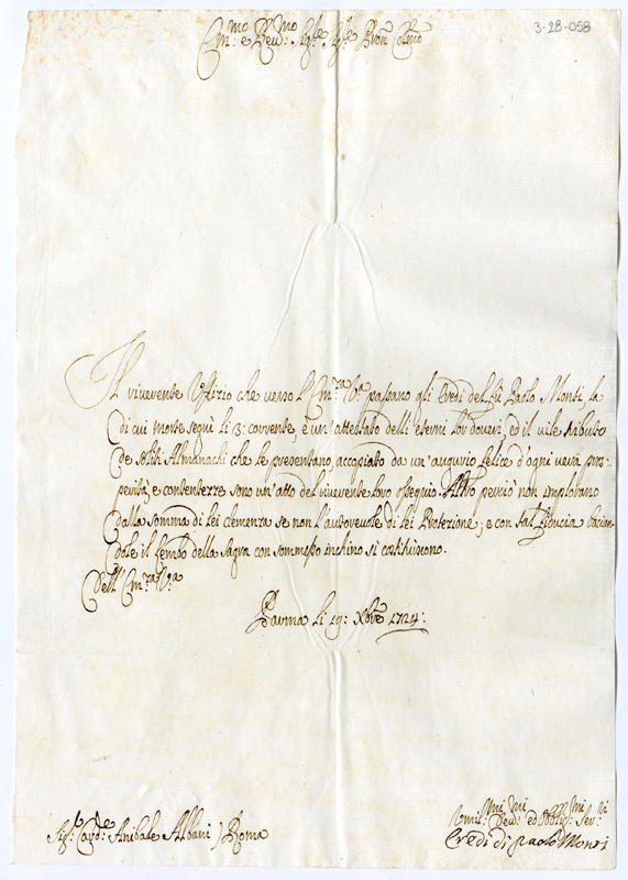 Lettera degli eredi di Paolo Monti al cardinale Annibale Albani (1724 dicembre 19)