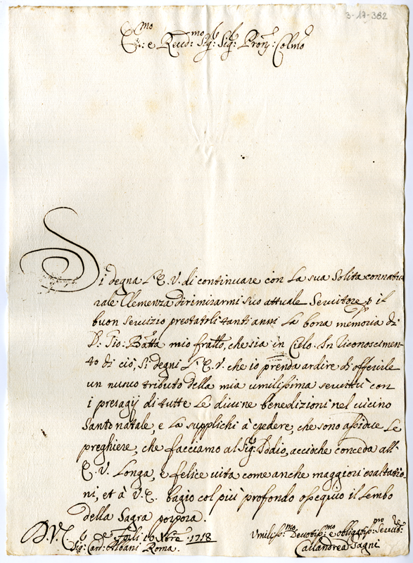 Lettera di Carlo Andrea Gagni al cardinale Annibale Albani (1718 dicembre 10)