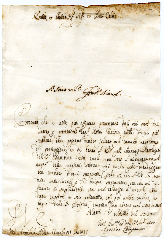 Lettera di Agostino Campanari al cardinale Annibale Albani (1730 dicembre 18)