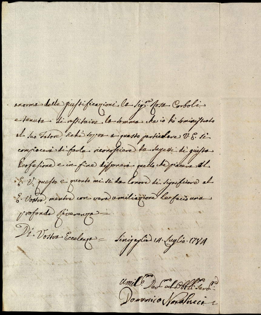 Lettere diverse ricevute in Colbordolo, Pesaro e Senigallia nel 1784