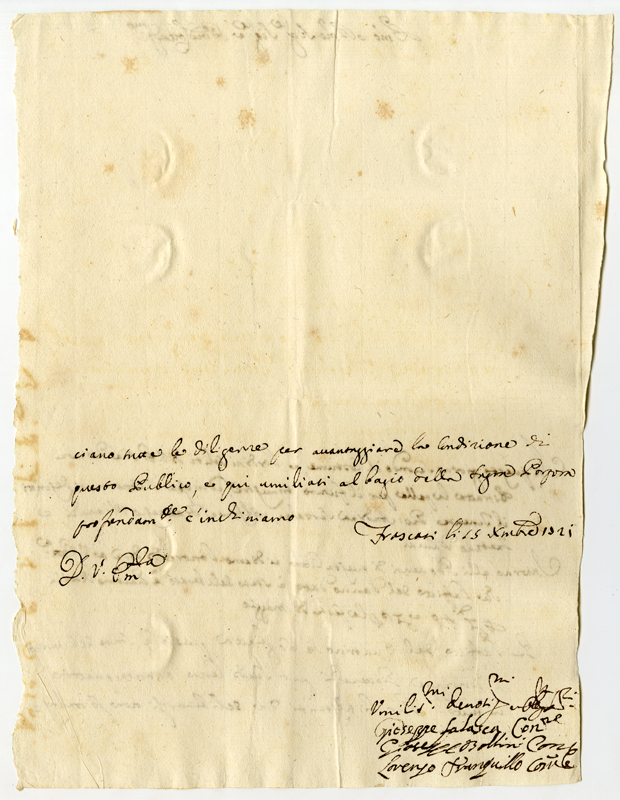 Lettera di Giuseppe Falasca, Giuseppe Bollini e Lorenzo Tranquillo al cardinale Annibale Albani (1721 dicembre 15)