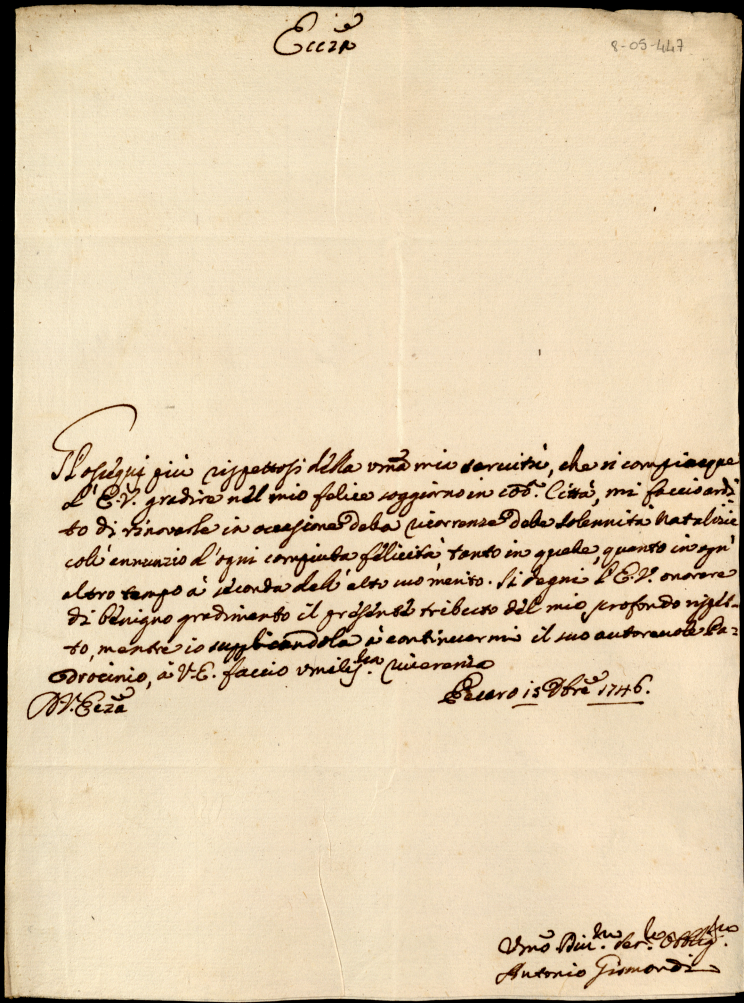 Lettere ricevute in Urbino dal Signor Principe Orazio Albani ultimo di questo nome nell'anno 1746