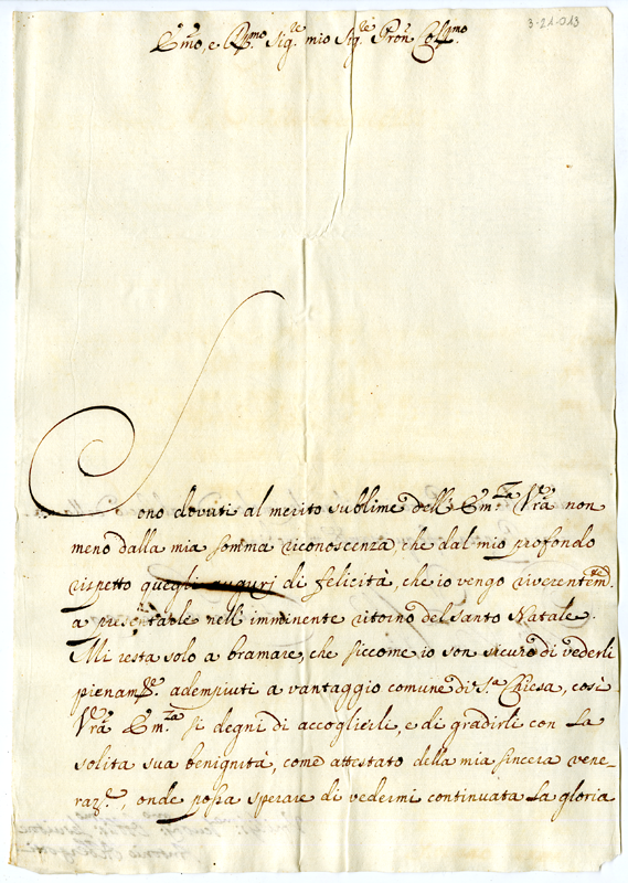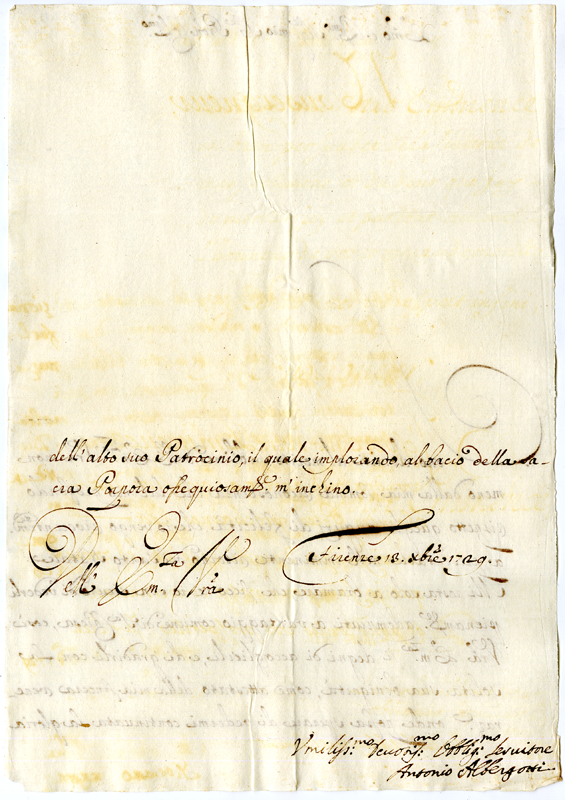 Lettera di Antonio Albergotti al cardinale Annibale Albani (1729 dicembre 13)