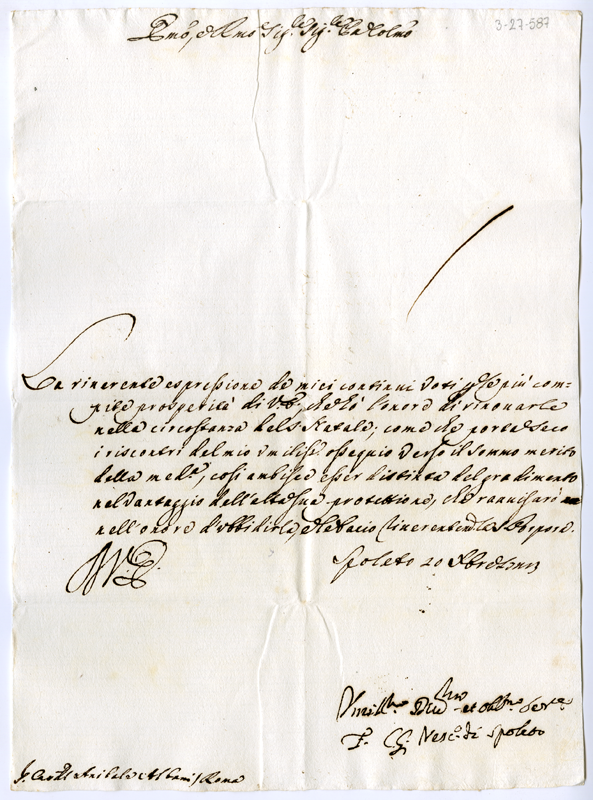 Lettera del vescovo di Spoleto al cardinale Annibale Albani (1723 dicembre 10)