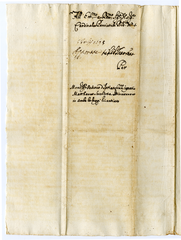 Lettera del Vescovo di Ypres e di Francesco Ignazio Mathewe al Cardinale Panciatici (1689-1700)