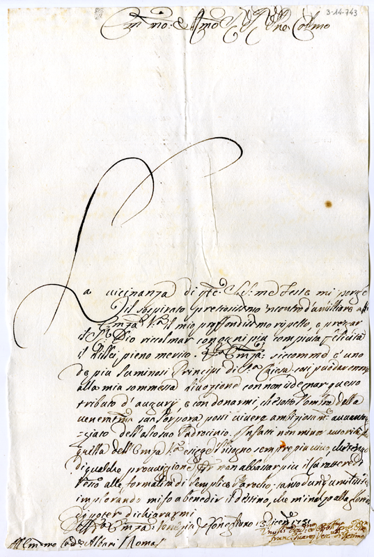 Lettera di Francesco Suarez vescovo di Retimo al cardinale Annibale Albani (1731 dicembre 13)
