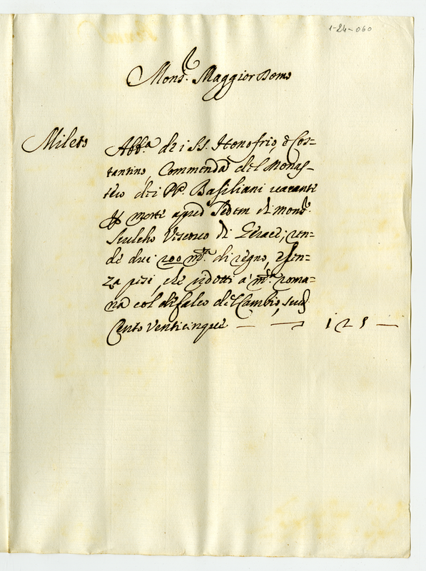 Nota sulle rendite dell'Abbazia di San Onofrio e Costantino della chiesa di Mileto (1700)