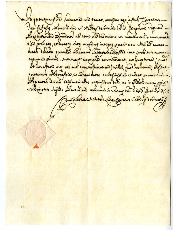 Attestato di buona condotta di Giuseppe Vaquer (1720 giugno 26)