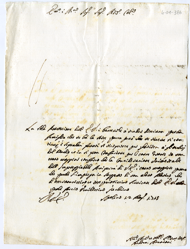 Lettera di Andrea Ancaiani al Cardinale Annibale Albani (1715 maggio 12)