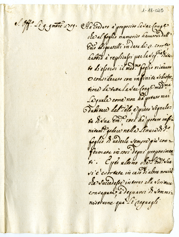 Lettera dal Sant'Ufficio (1709 novembre 9)