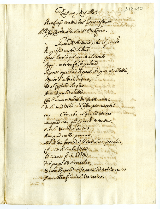 Dies Ire, Dies Illa. Parafrasi tratta dal francese. Al Signor cardinale di S. Onofrio