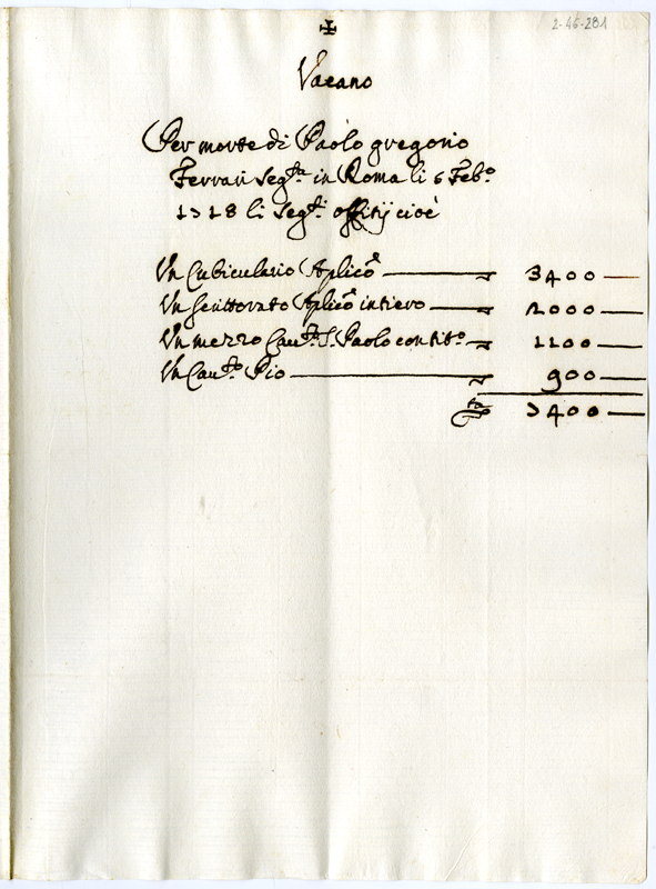 Benefici vacanti per morte di Paolo Gregorio Ferrari (1718 febbraio 5)