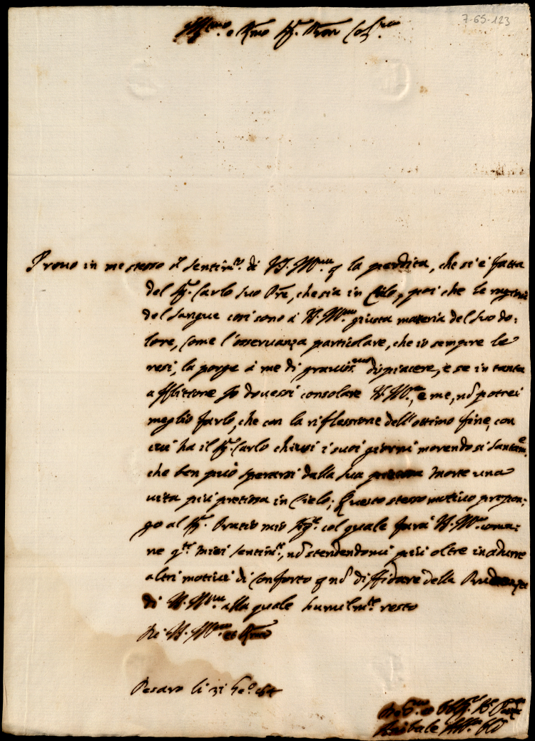 Lettere a Giovanni Francesco Albani per la morte del padre Carlo