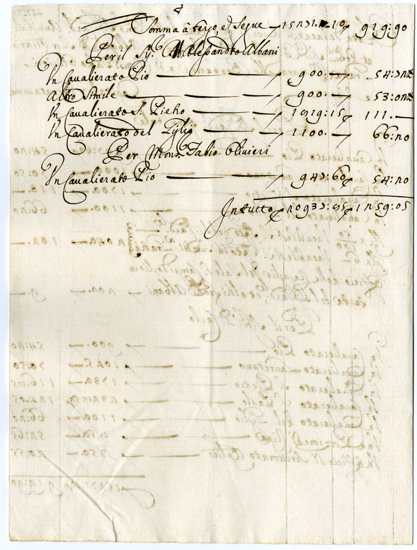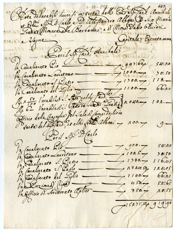 Nota de vacabili in testa all'Eminentissimo Cardinale Annibale et Eccellentissimi Signori Don Carlo e Don Alessandro Albani, di suor Maria Gratia monaca alle Barberine e di Monsignor Fabio Olivieri