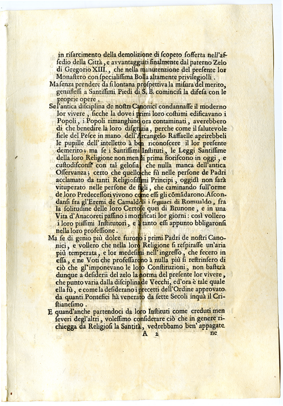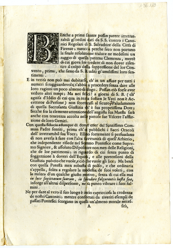 Considerazioni dei Canonici Regolari di San Salvatore sulla soppressione del loro convento a Firenze (1700-1721)