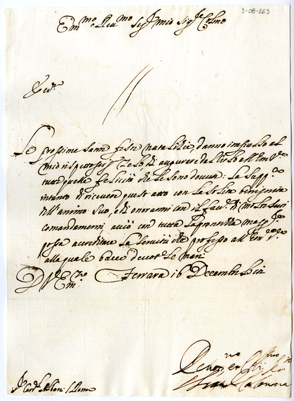 Lettera di Francesco Colonna al cardinale Annibale Albani (1712 dicembre 16)