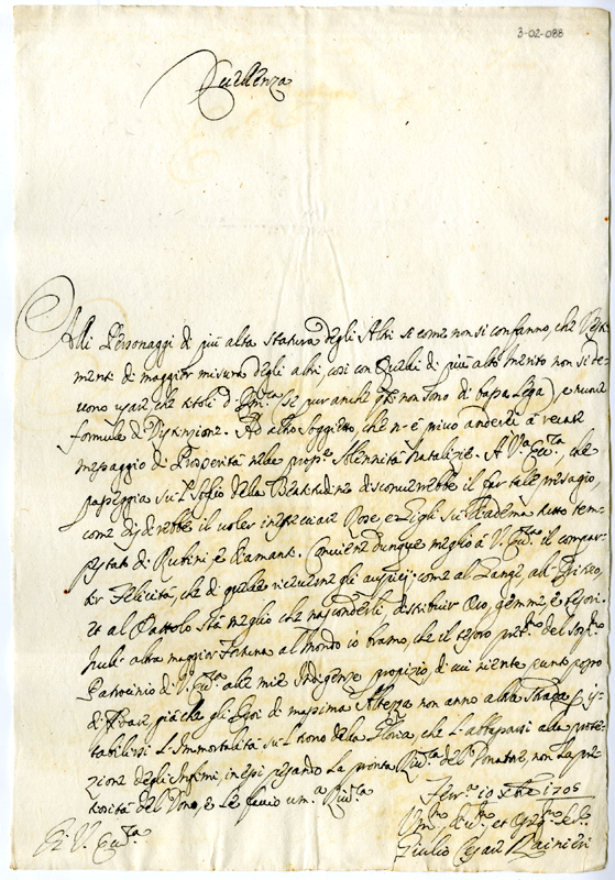 Lettera di Giulio Cesare Rainieri ad Annibale Albani (1705 dicembre 10)