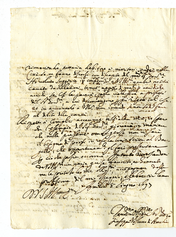 Lettera di Giuseppe Crispino, vescovo di Amelia (1697 giugno 8)