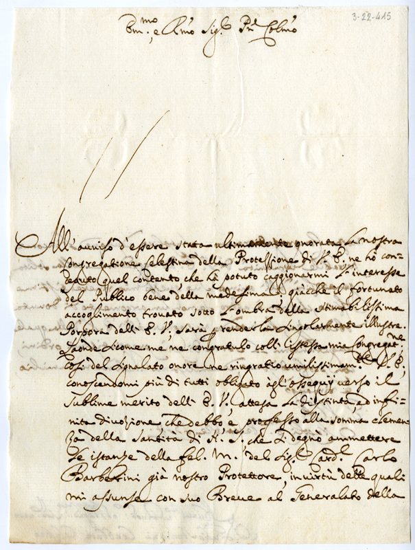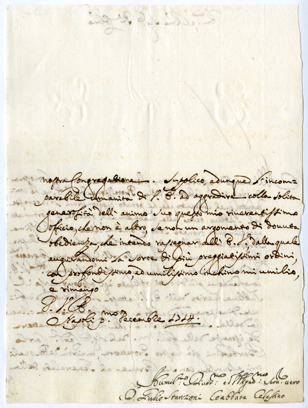 Lettera di Giulio Stanzioni al cardinale Annibale Albani (1714 dicembre 1)