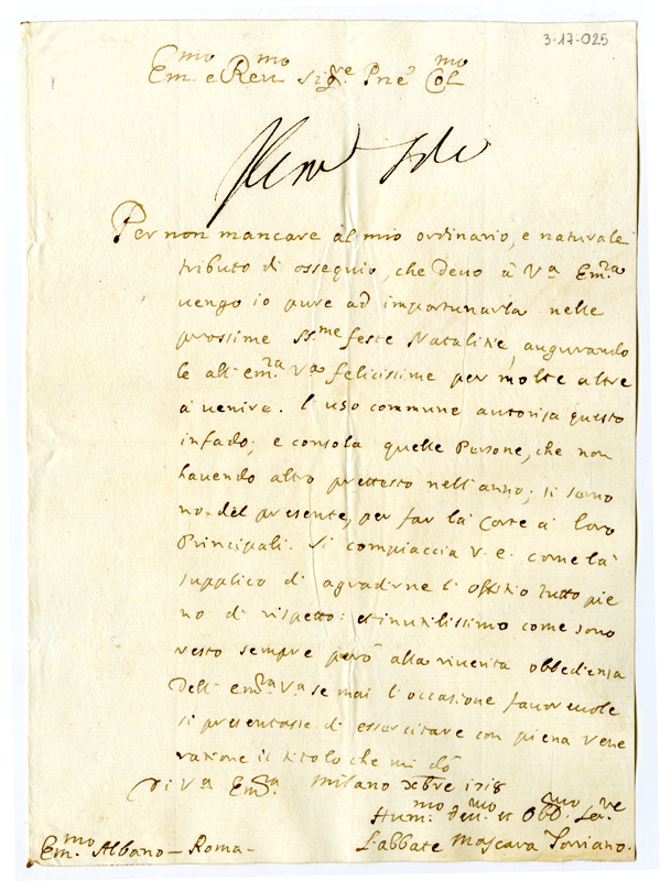 Lettera dell'abate Mascara Torriano al cardinale Annibale Albani (1718 dicembre)