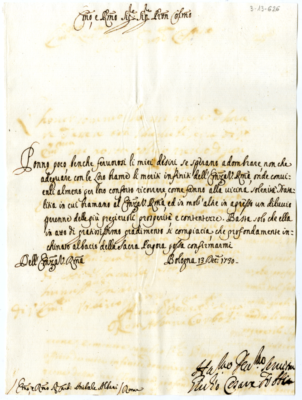 Lettera di Giulio Cesare Fibbia al cardinale Annibale Albani (1730 dicembre 13)