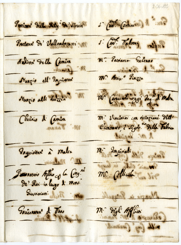 Nominativi di cariche e incaricati (1700-1721)