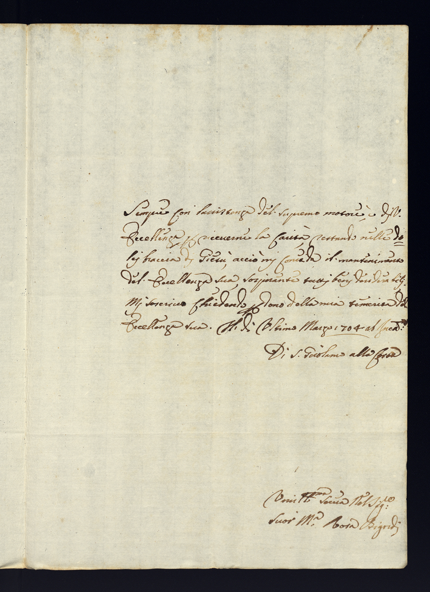 Lettere di negozio e di complimento all'Illustrissima Eccellenza dell'anno 1704. Semestre primo
