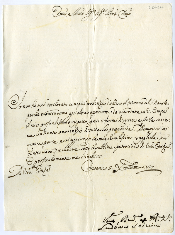 Lettera di Ludovico Soderini al cardinale Annibale Albani (1720 dicembre 5)